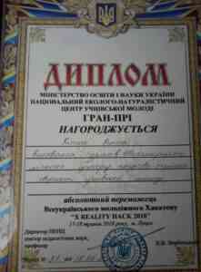 Житомирську область представляли шестеро вихованців гуртка «Основи науково -дослідницької діяльності» Житомирського міського центру науково-технічної творчості учнівської молоді (керівник Шубін А.Г.), учнів Житомирської ЗОШ І-ІІІ ст. № 30. Команда отримала завдання розробити актуальний екологічний проект. Кіпчук Анна та Закревський Олександр запропонували свій проект «Екологічного будинку». За оцінками журі він і став найкращим – абсолютним переможцем Хакатону.
