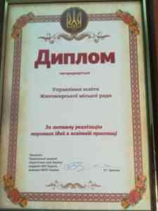 Дипломом Національної академії педагогічних наук України за активну реалізацію наукових ідей в освітній практиці нагороджено: