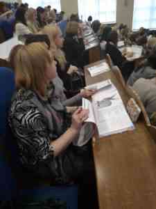 Значну увагу було приділено питанням тестування, а саме міжнародним стандартам та підходам до оцінювання рівня комунікативної компетентності та якісній підготовці до міжнародного мовного іспиту РТЕ -Pearson Test of English (Юлія Карпенко та Юлія Киянець, методисти освітньо-методичного центру Dinternal Education), міжнародній сертифікації вчителів ТКТ- Teaching Knowledge Test (Олена Колодій-Загільська, директор Першого регіонального центру тестування іноземних мов у Житомирі).