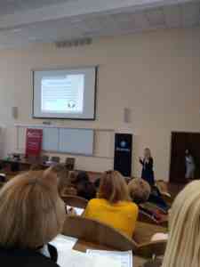 Наталія Клясен, виконавчий директор ТОВ «Академії інноваційного розвитку освіти», кандидат педагогічних наук, завідувач сектору проектування моделей підготовки управління ДНУ «Інститут модернізації змісту освіти» МОН України звернула увагу на питання професійного розвитку та становлення особистості фахівця з англійської мови в сучасних умовах. Анастасія Данилко, викладач та академічний директор освітнього центру WinWin Cambridge Educational Centre наголосила на важливості предметно-мовного інтегрованого навчання (CLIL) та його застосуванні на уроках англійської мови.