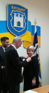 Пан Посол вручив високу нагороду – Орден Академічних пальм (фр. l’Ordre des Palmes académiques) Лисянюк Олені Леонідівні, заступнику директора Житомирської спеціалізованої школи І-ІІІ ступенів №20.