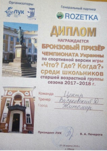 У ході інтелектуальних турнірів Житомиряни вибороли право представляти Україну на чемпіонаті Європи, який буде проходити в травні в Білорусії.
